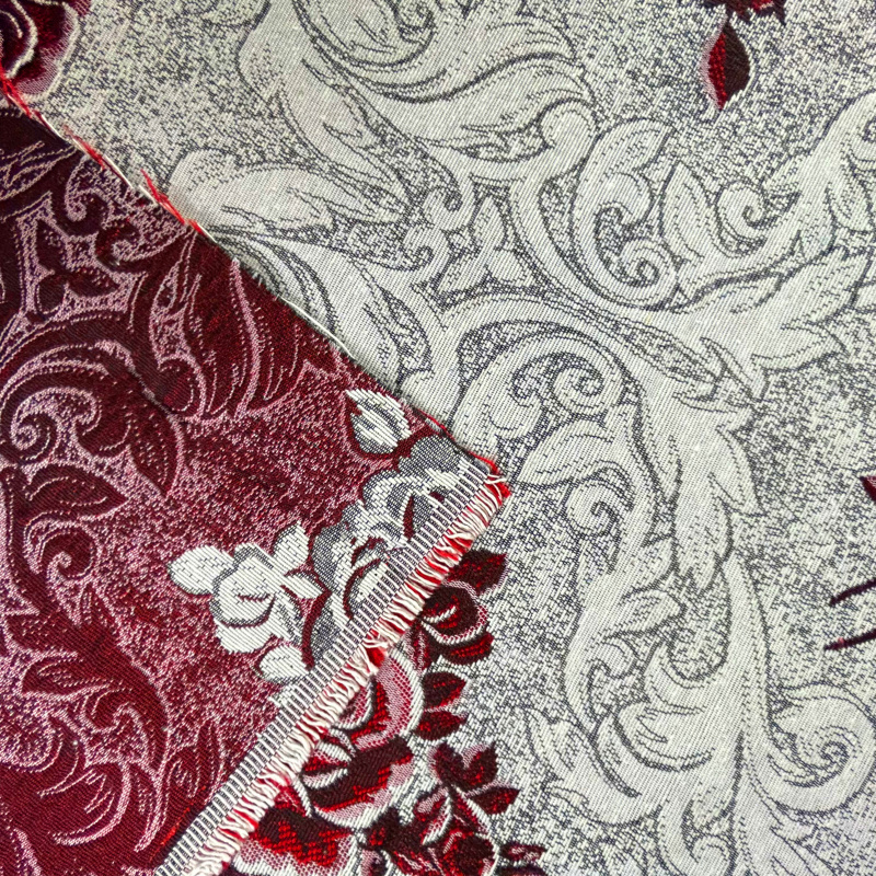 Dekorační/potahová gobelínová látka s hlavním květinovým vzorem je luxusní textilie s bohatými a složitými motivy. Tato látka je charakteristická svými červenými růžemi, které se opakují na šedém pozadí s bílými ornamentálními prvky. Květinové motivy jsou detailně propracované a dodávají látce elegantní a sofistikovaný vzhled. Tato látka je ideální pro použití jako potahový materiál na nábytek nebo jako dekorativní textilie, která přinese do každého interiéru dotek elegance.