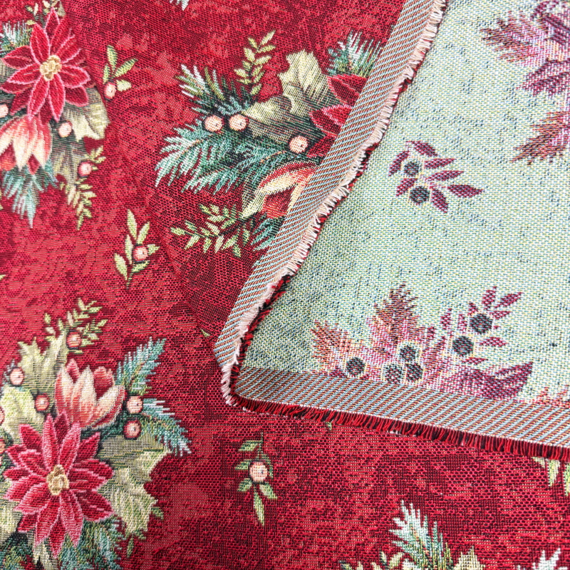 280cm Dekorační/potahová Gobelínová látka šířka - Kouzlo vánočních květin na červeném