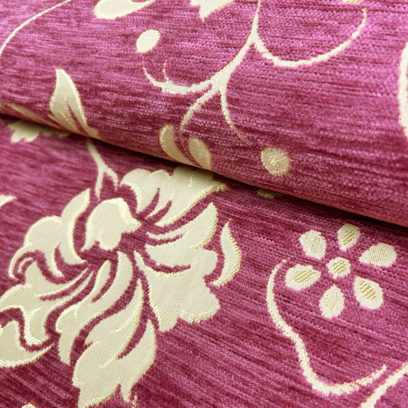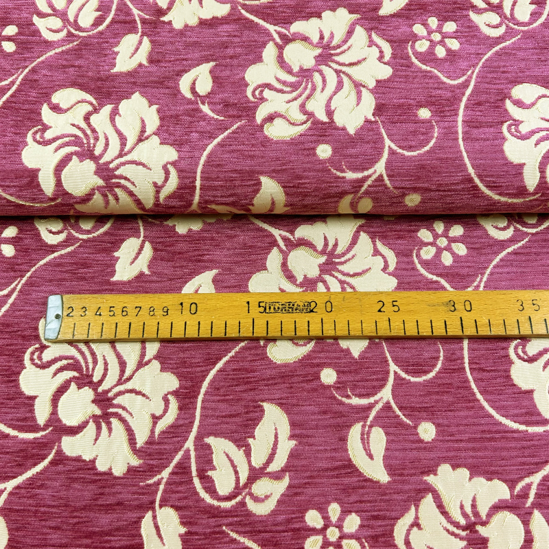 Dekorační/potahová gobelínová oboustranná látka Rekor je látka s bohatým květinovým vzorem, který zahrnuje různé květinové motivy a jemné listy propojené elegantními křivkami. Látka má růžový podklad s krémově bílými květy, což jí dodává svěží a romantický vzhled. Vzor je oboustranný, což znamená, že květinové motivy jsou viditelné z obou stran látky, což přidává na všestrannosti a flexibilitě jejího použití.