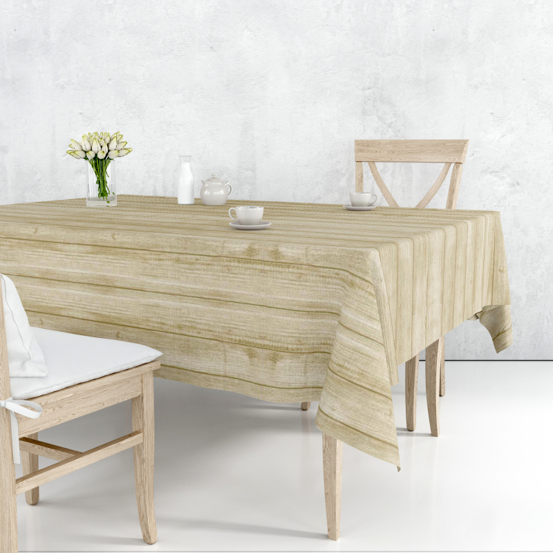 Omyvatelný PVC ubrus v šířce 140cm se vzorem imitace dřeva.