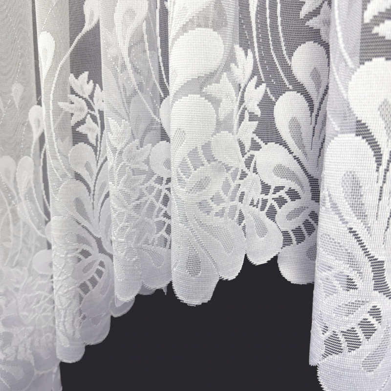 Díky elegantnímu vzoru a univerzálnímu bílému provedení se tato záclona hodí do moderních i klasických interiérů.