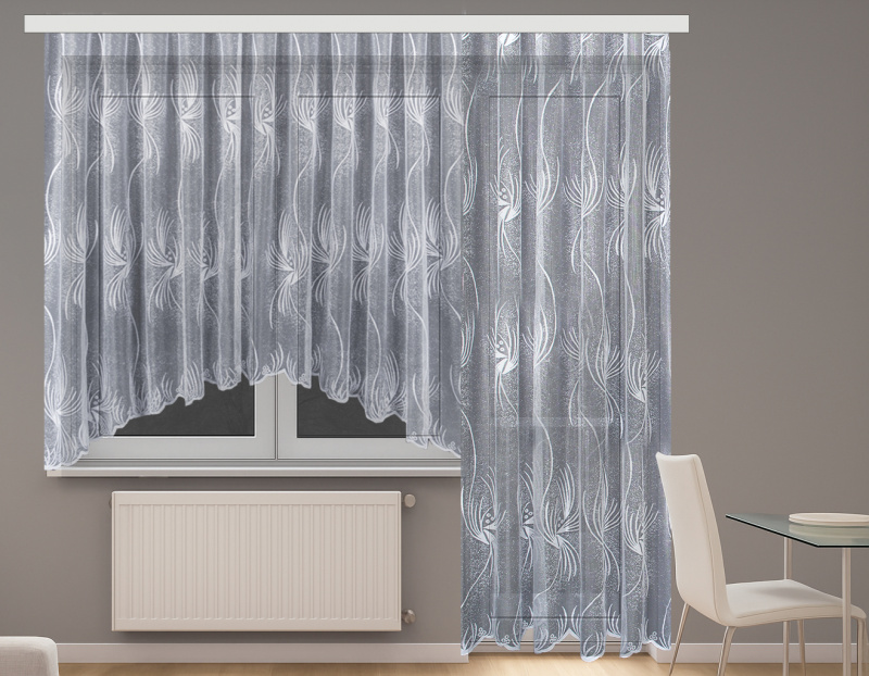 Díky elegantnímu vzoru a univerzálnímu bílému provedení se tato záclona hodí do moderních i klasických interiérů.