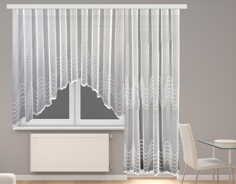 Díky elegantnímu vzoru a univerzálnímu bílému provedení se tato záclona hodí do moderních i klasických interiérů.