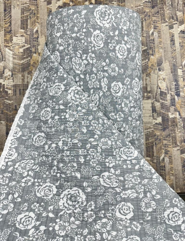 Ervi bavlna - Krep š.240 cm - Květy na šedém č.26550-4, metráž