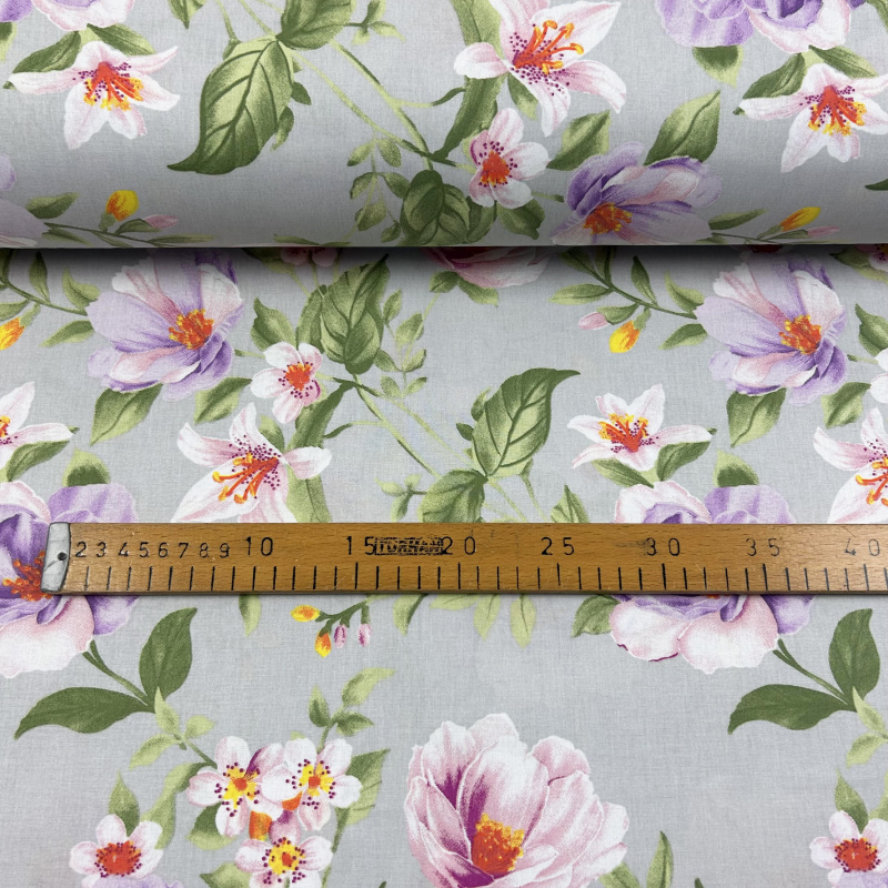 Ervi Bavlněná látka/plátno š.240cm - Magnolia a lilia na šedém - 30269-6, metráž