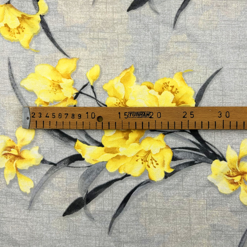 Ervi Bavlněná látka/plátno š.240cm - žluté květy na šedém - 117374, metráž