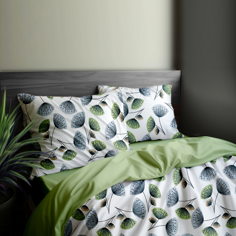 Ervi bavlněné povlečení oboustranné - abstraktní květiny/světle olivové