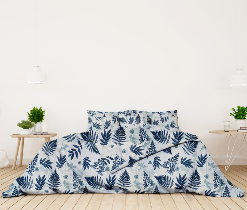 Ervi bavlněné povlečení - Akvarelové lístky na modrém
