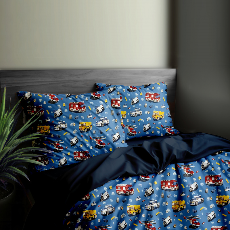 Ervi Bavlněné povlečení oboustranné - autíčká a vrtulníky na modrém/černé