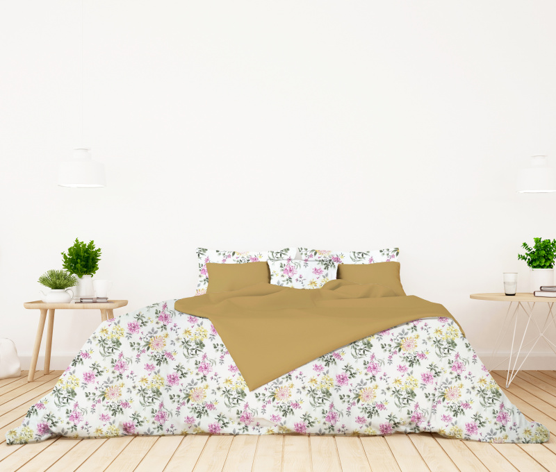 Ervi bavlněné povlečení oboustranné - barevné květiny na bílém/hořčice
