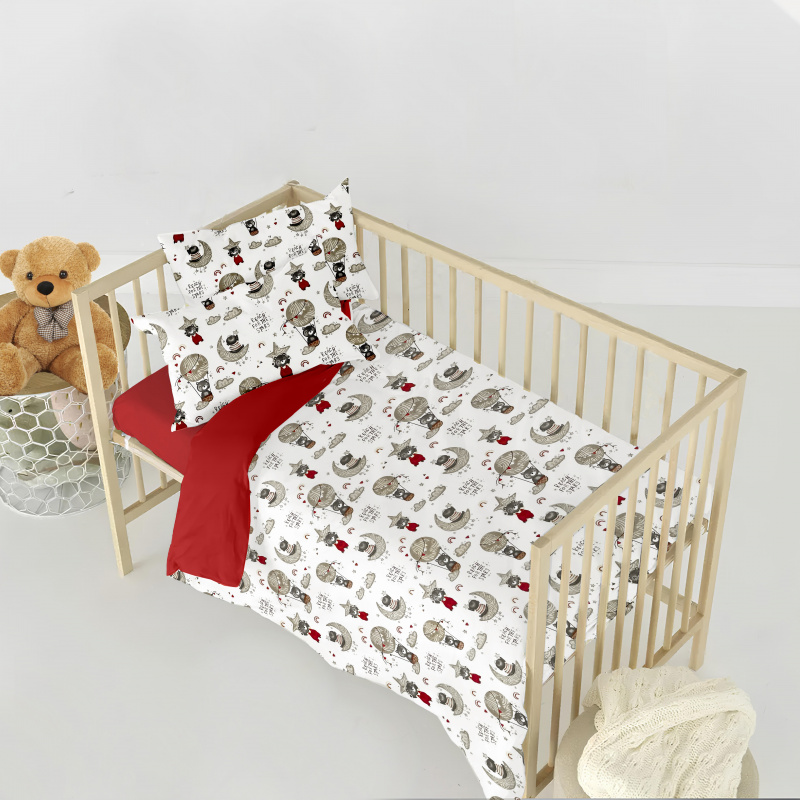 Ervi bavlněné povlečení do postýlky DUO - medvídci a hvězdy/červené
