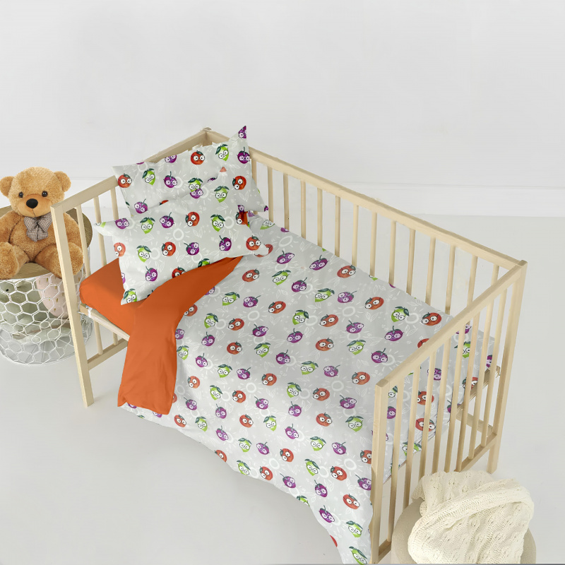 Ervi bavlněné povlečení do postýlky DUO - zábavné ovoce/oranžové