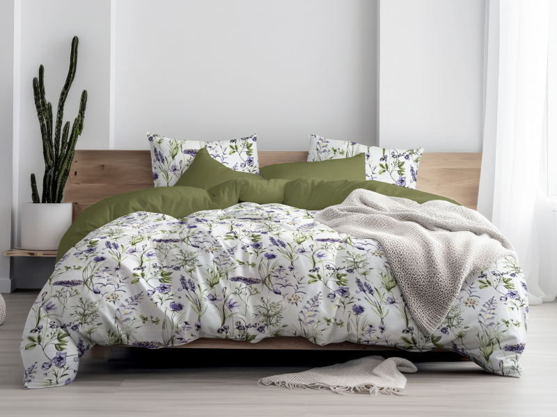 Ervi Bavlněné povlečení oboustranné - fialová letní louka/olivové