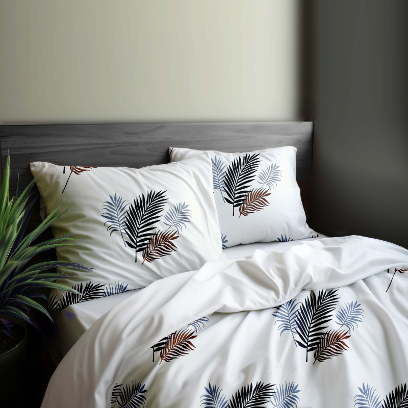 Ervi bavlněné povlečení oboustranné - hnědé a modré palmové listy/bílé