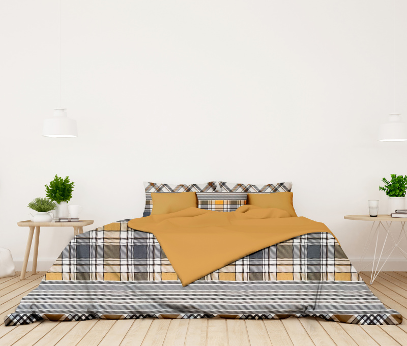 Ervi bavlněné povlečení oboustranné - hnědo-šedé káro/hořčice