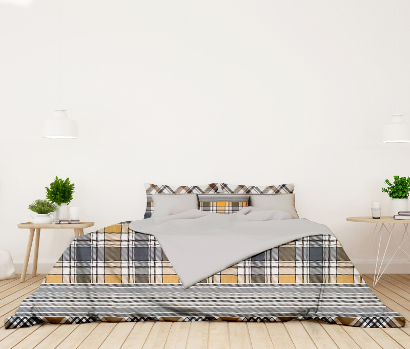 Ervi bavlněné povlečení oboustranné - hnědo-šedé káro/světle šedé