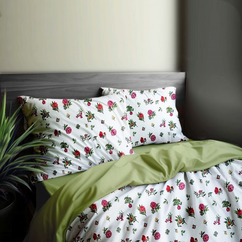 Ervi bavlněné povlečení oboustranné - Jetele na bílém/světle olivové