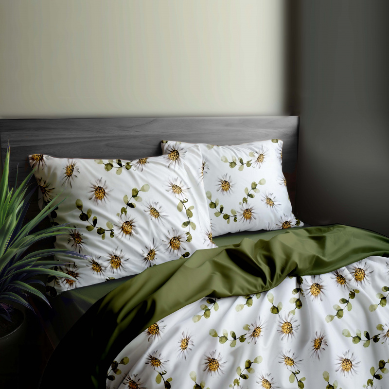 Ervi Bavlněné povlečení oboustranné - Kouzlo heřmánek/olivové
