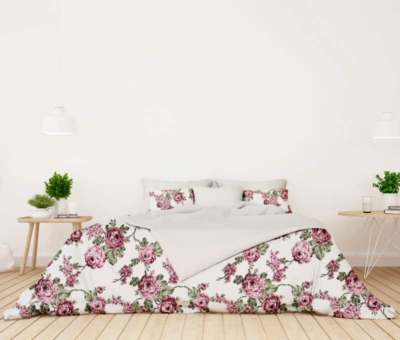 Ervi bavlněné povlečení oboustranné - růžové květy na bílém/světlé šedé