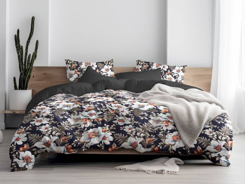 Ervi Bavlněné povlečení oboustranné - Květinový večer/černé
