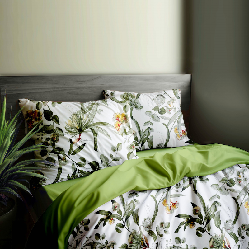Je vyrobeno ze 100% kvalitní bavlny, která zajišťuje pohodlí a maximální prodyšnost. Zelené a světle olivové tóny povlečení dodávají přírodní nádech a harmonii. S tímto povlečením si užijete klidné a pohodlné noci.