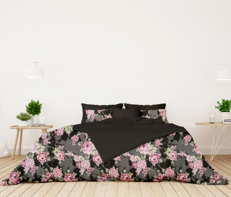 Ervi bavlněné povlečení oboustranné - Květy na černém/černé