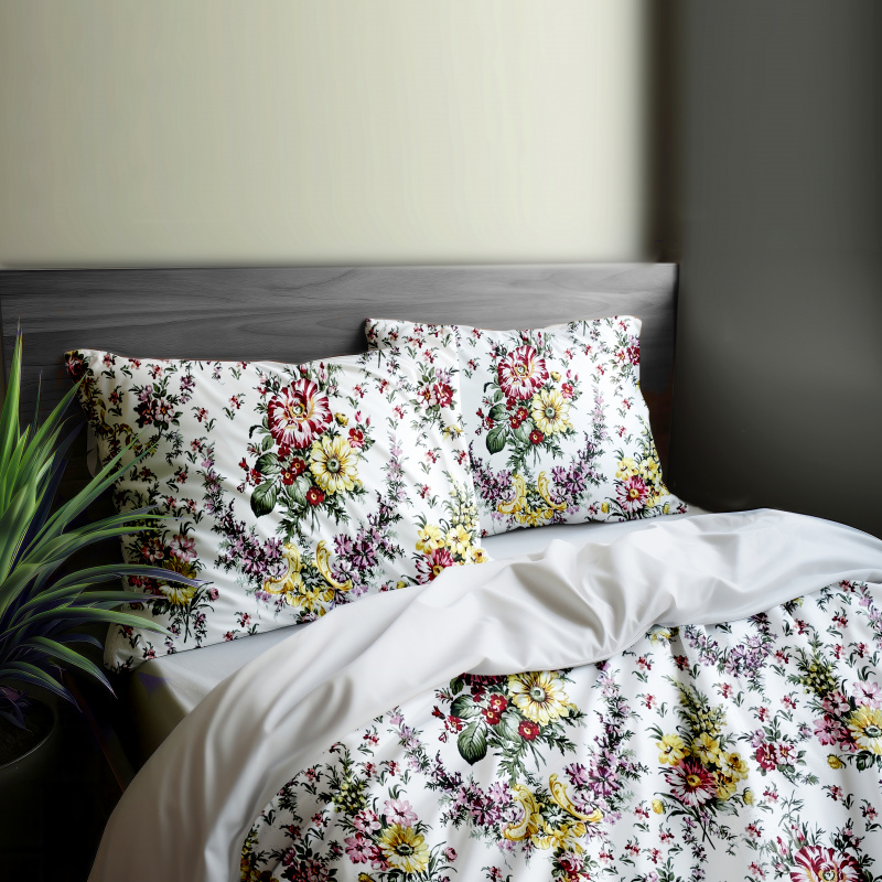 Ervi bavlněné povlečení oboustranné - Kytice na bílém/světle šedé