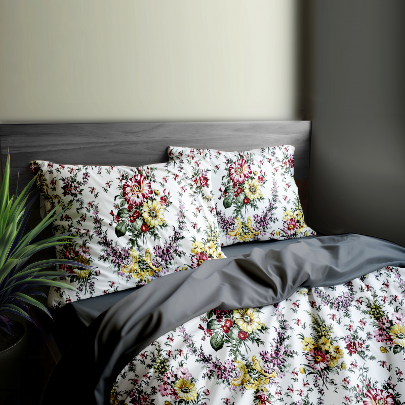 Ervi bavlněné povlečení oboustranné - Kytice na bílém/tmavě šedé