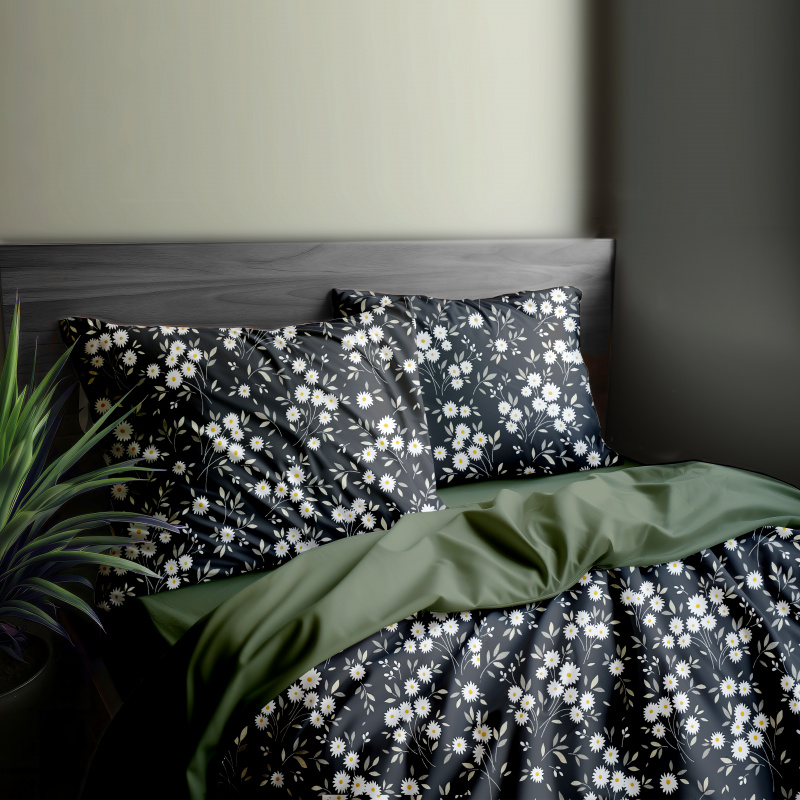 Ervi Bavlněné povlečení oboustranné - kytice sedmikrásek/olivové