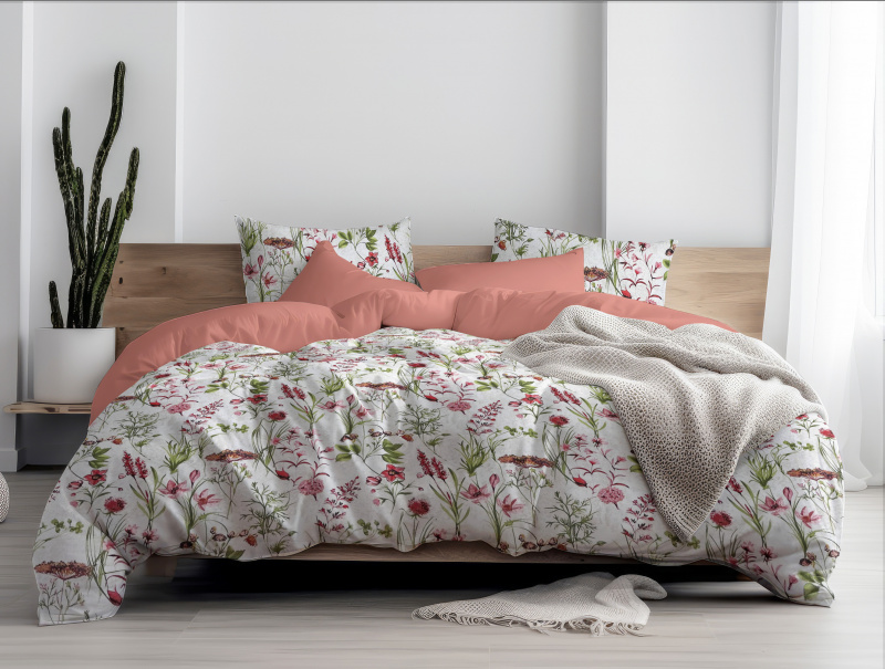 Ervi Bavlněné povlečení oboustranné - letní louka/korálové