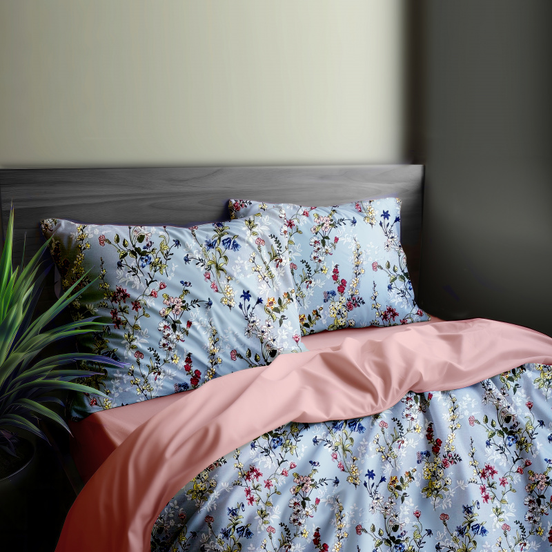 Toto povlečení je vyrobeno z kvalitní bavlny a je oboustranné. Na jedné straně najdete krásné malované luční květiny na světle modrém podkladu, zatímco druhá strana je v jednobarevné růžové barvě. Povlečení zahrnuje jak povlak na polštář, tak na přikrývku, což vaší ložnici dodá svěží a přírodní vzhled. Tento produkt je ideální volbou pro milovníky přírody a romantiky, kteří chtějí ve svém domově vytvořit uklidňující a harmonickou atmosféru.