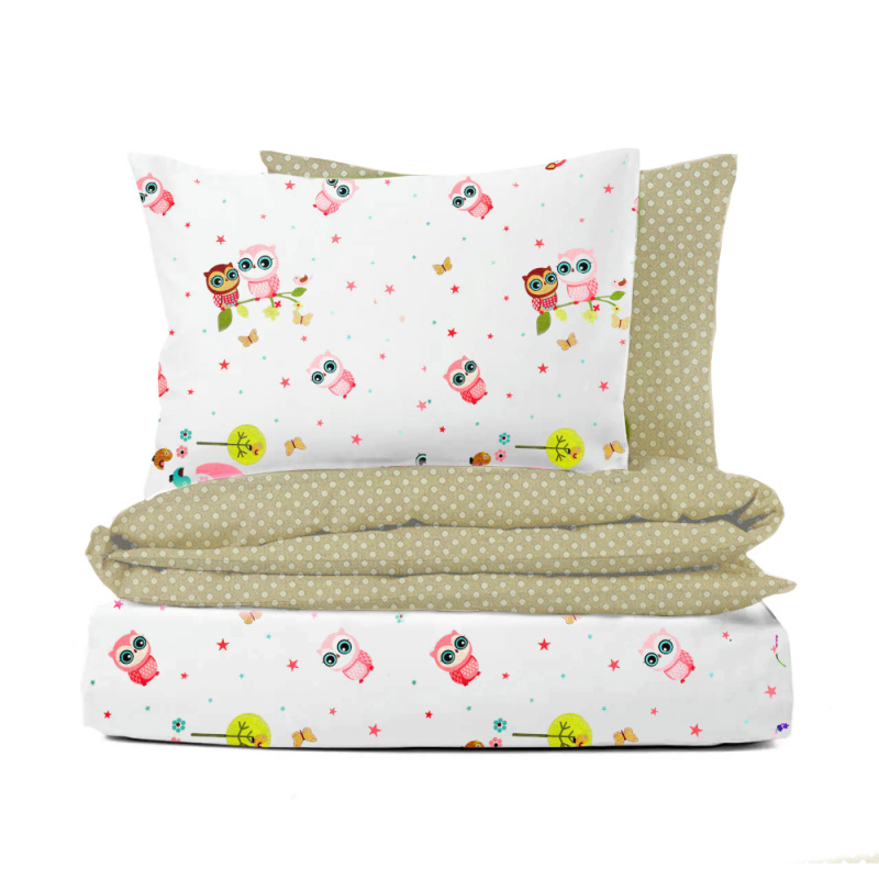 lesní zvířatabílé puntíky na zeleném-2 ks