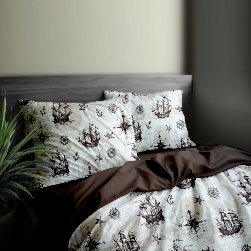 Ervi bavlněné povlečení oboustranné - Mořská dobrodružství hnědé/hnědé