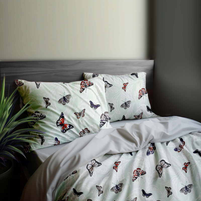 Ervi bavlněné povlečení oboustranné - motýli na tyrkysovém/světle šedé