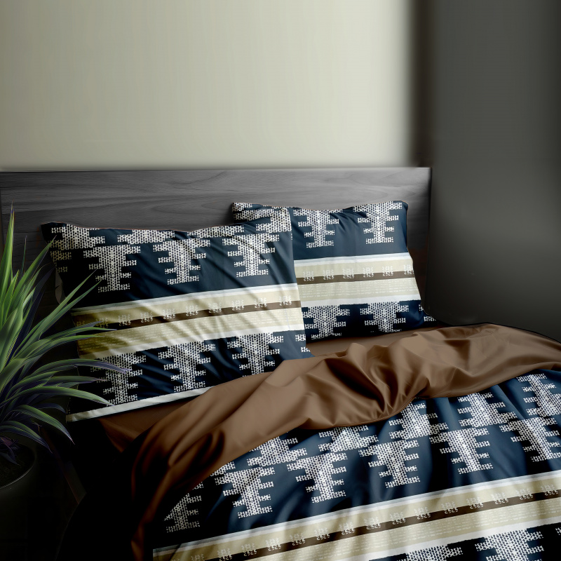 Ervi Bavlněné povlečení oboustranné - Nordic modrý/hnědé