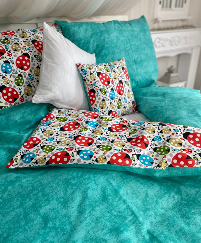 Ervi bavlněné povlečení oboustranné - barevné berušky/tyrkysové