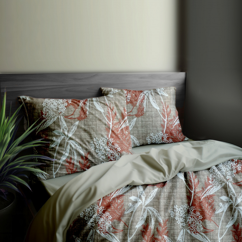 Ervi Bavlněné povlečení oboustranné - oranžové a bílé listy na hnědém/béžové