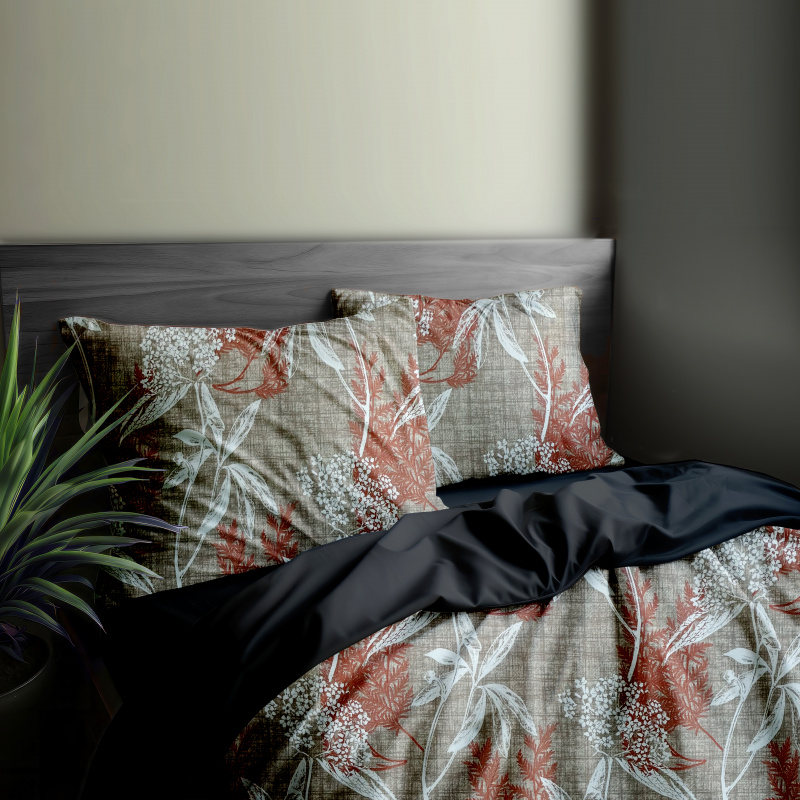 Ervi Bavlněné povlečení oboustranné - oranžové a bílé listy na hnědém/černé