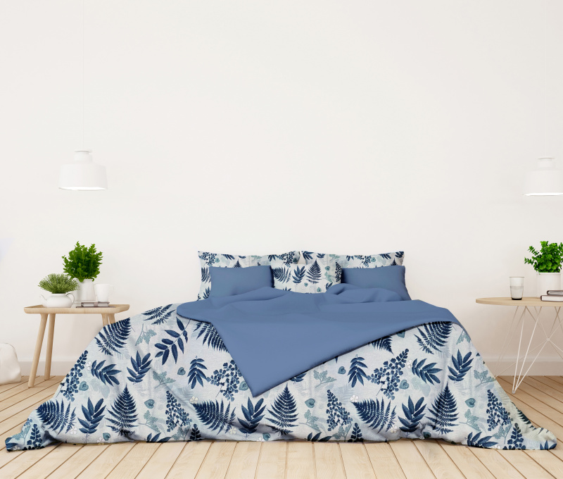 Ervi bavlněné povlečení oboustranné - Akvarelové lístky na modrém/modré