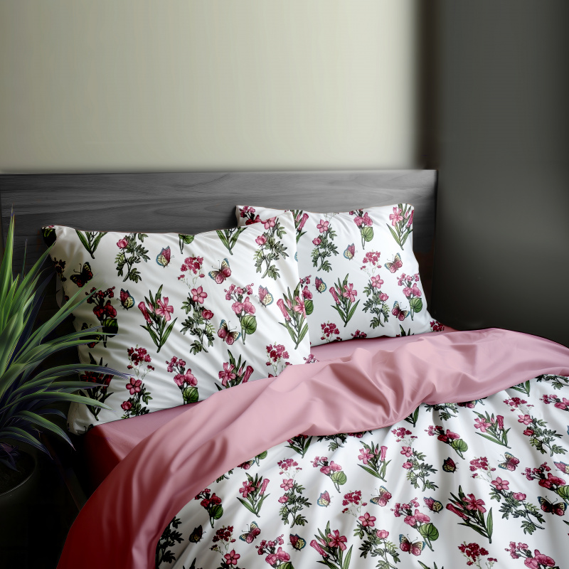 Ervi bavlněné povlečení oboustranné - růžové luční květiny/růžové