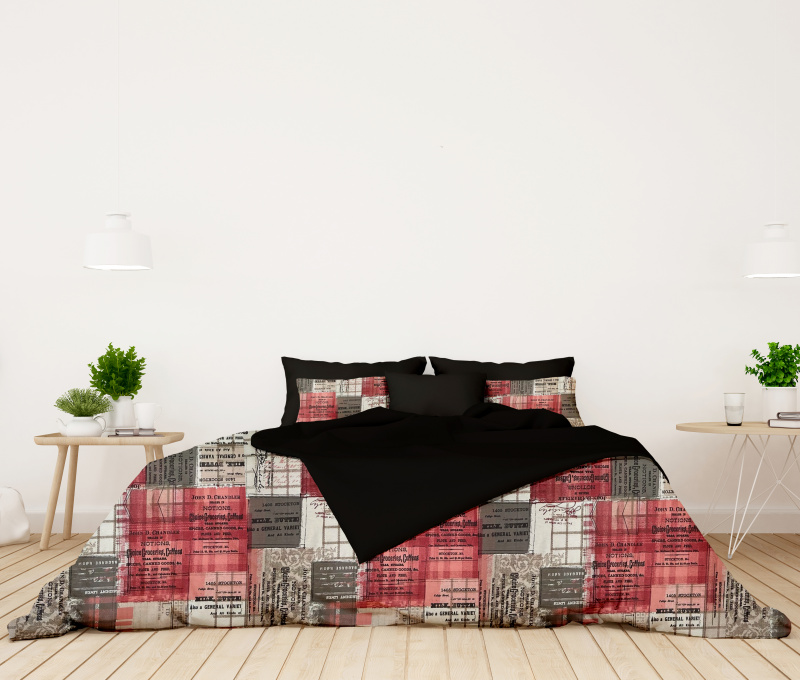 Bavlněné povlečení oboustranné - Sherlock/červené/černé. Toto povlečení je vyrobeno z kvalitní bavlny a nabízí oboustranný design, který umožňuje snadnou změnu vzhledu ložnice. Jedna strana je inspirována motivy Sherlocka Holmese, obsahující texty a grafiku připomínající staré noviny, zatímco druhá strana je jednobarevná v elegantní černé barvě. Ideální volba pro milovníky detektivních příběhů a stylového designu.