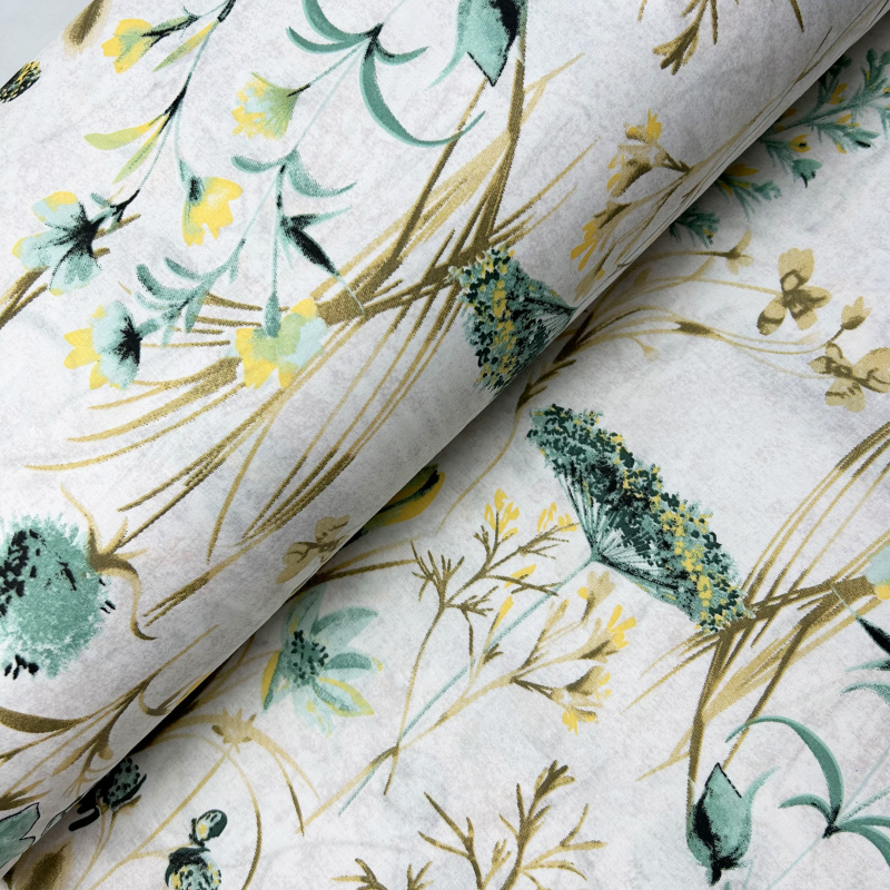 Ervi Bavlněné povlečení oboustranné - tyrkysová letní louka/olivové