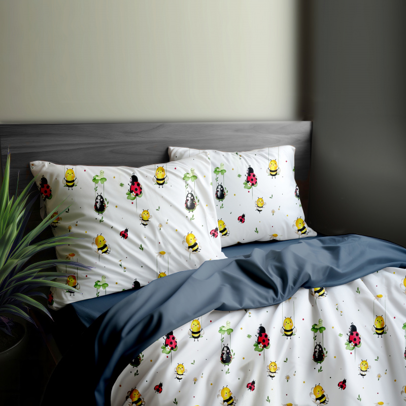 Ervi bavlněné povlečení oboustranné - včely a berušky/tmavě šedé