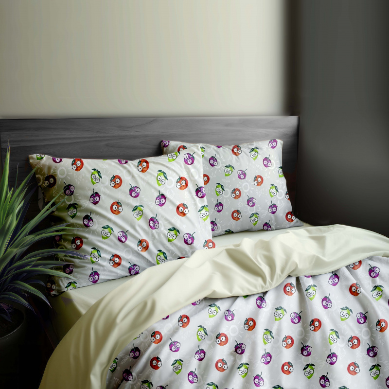 Ervi bavlněné povlečení oboustranné - zábavné ovoce/bežové