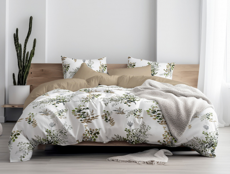 Ervi Bavlněné povlečení oboustranné - Zahrada Snov 2/světle hněde
