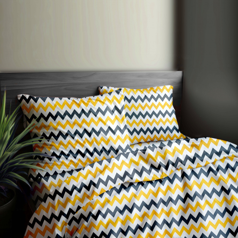 Ervi bavlněné povlečení -žluté a šedé cik-cak