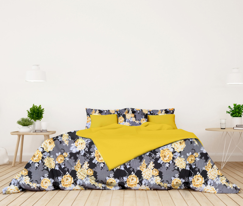 Ervi bavlněné povlečení oboustranné - žluté květy na černém/žluté