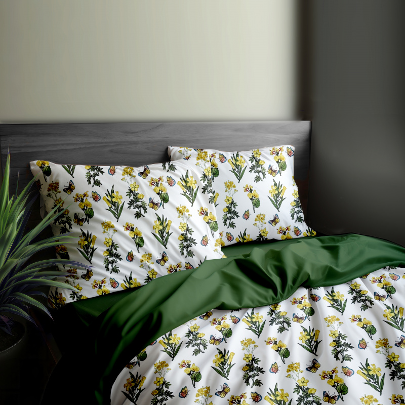 Ervi bavlněné povlečení oboustranné - žluté luční květiny/olivové