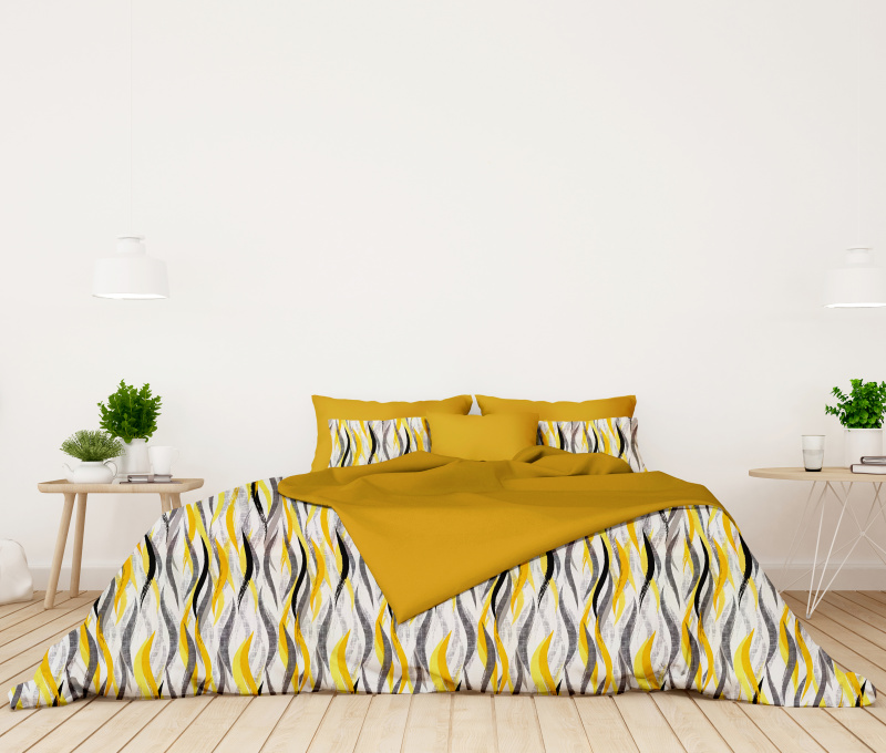 Ervi bavlněné povlečení oboustranné - žluto-šedé vlny/žluté