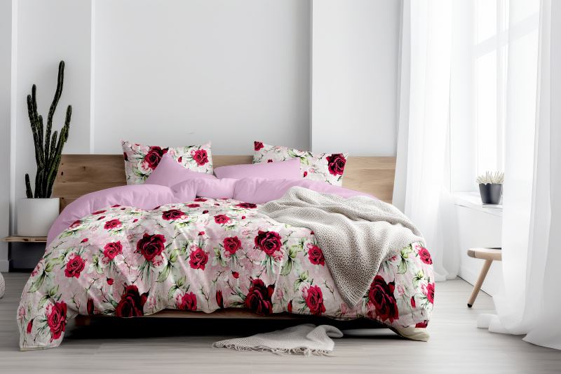 Ervi Bavlněné Saténové povlečení DELUXE DUO - Růžové sny/růžové